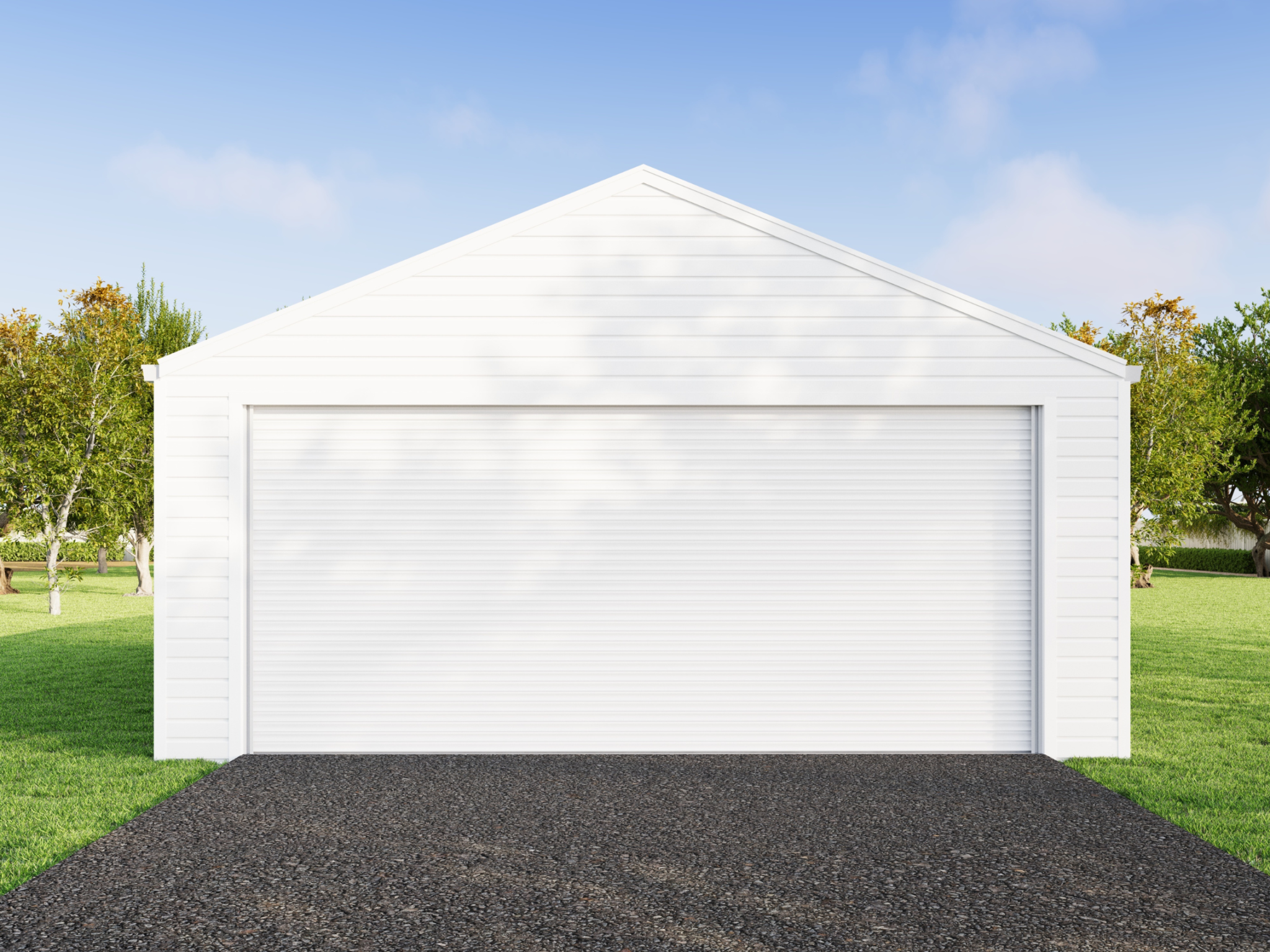 A standout feature of this design is the large 5m wide roller door, allowing easy drive-through access for most vehicles, caravans, boats, and machinery.